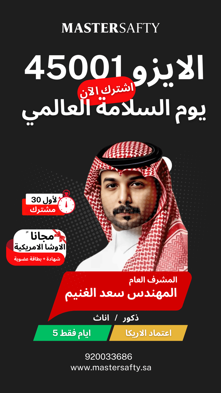 مؤسسة سعودية مرخصة وموثوقة لتقديم وتنظيم الدورات التدريبية اونلاين وحضورية متخصصة في دورات السلامة والصحة المهنية والجودة والبيئة